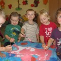 Wszystkie dzieci tego dnia zamieniły się w małe świnki, i dlatego być może podczas słuchania opowieści widać było na ich twarzach wiele emocji. Na szczęście świnki poradziły sobie ze złym wilkiem, a nasze maluchy już wiedzą, że warto poświęcić na coś co robimy więcej czasu, aby efekt był bardziej trwały.