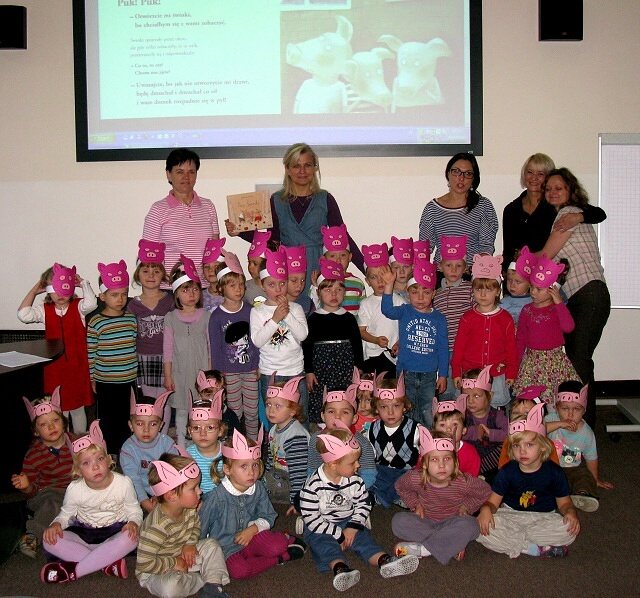 Pierwsze w tym roku szkolnym spotkanie z książką, w ramach projektu „Wychowanie przez czytanie” odbyło się w towarzystwie sympatycznych świnek. Mowa tu o bohaterkach jednej z najpopularniejszych, bardzo lubianej przez dzieci bajce pt. „Trzy świnki”.