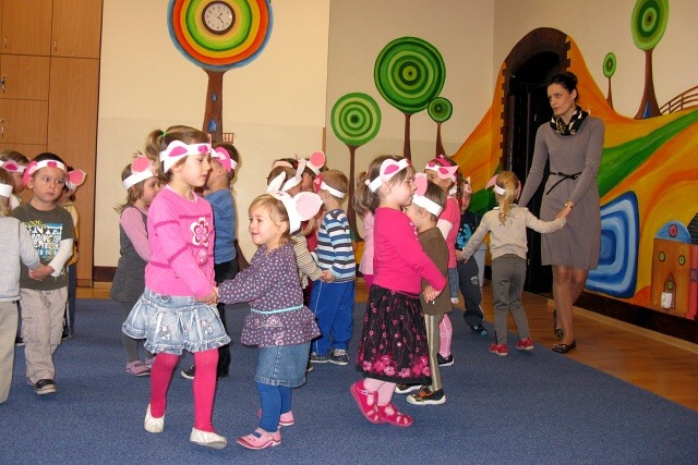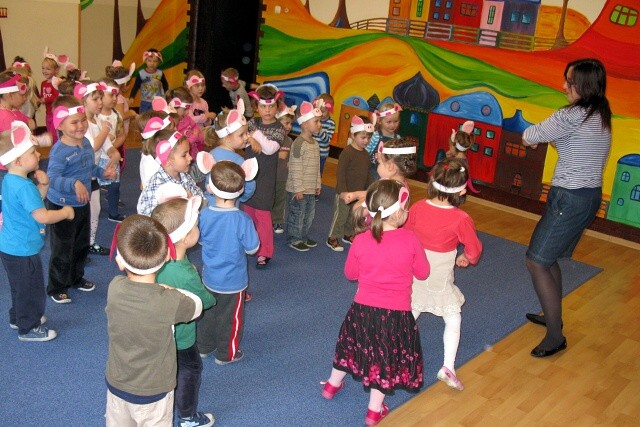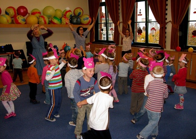 Aby uczcić zwycięstwo świnek nad wilkiem, dzieci tańczyły wesoło przy muzyce i śpiewały radośnie piosenkę „My jesteśmy świnki trzy”.