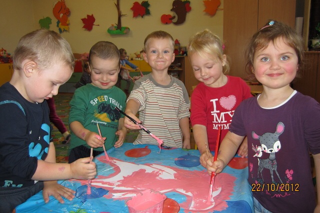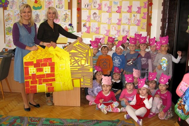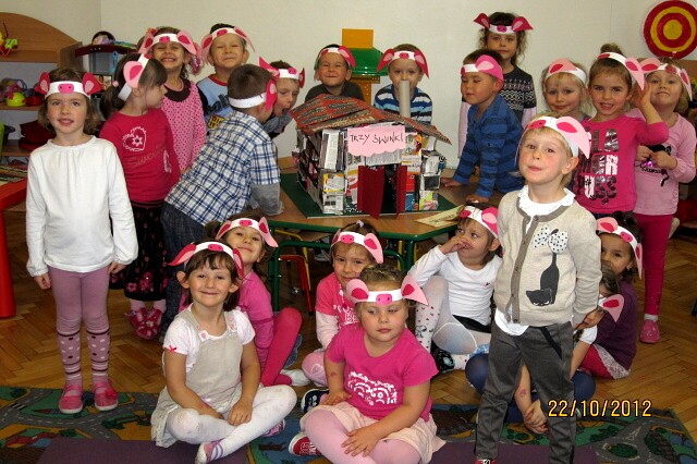 Wszystkie dzieci tego dnia zamieniły się w małe świnki, i dlatego być może podczas słuchania opowieści widać było na ich twarzach wiele emocji. Na szczęście świnki poradziły sobie ze złym wilkiem, a nasze maluchy już wiedzą, że warto poświęcić na coś co robimy więcej czasu, aby efekt był bardziej trwały.