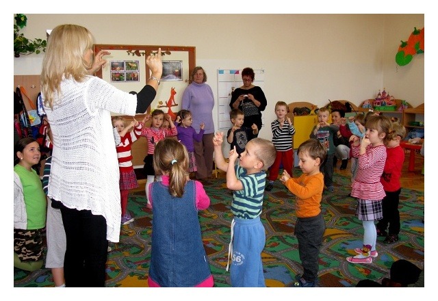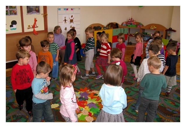 5 listopada rodzice dzieci z grupy II przybyli na zajęcia otwarte o tematyce jesiennej. Spotkanie rozpoczęło się od przekazania z rąk do rąk uśmiechniętej piłeczki i powiedzenia kilku słów o sobie. Rodzice aktywnie uczestniczyli w zabawach ruchowych „Kółko małe, kółko duże„, „Wieje wiatr”, „Grzybki” a dzieci pięknie recytowały wiersze „Nie lubię leniuchować”, „Jesień”.