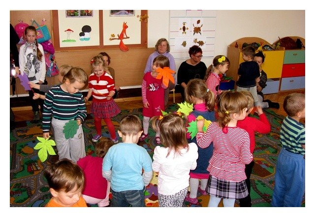 Podczas odgadywania jesiennych zagadek, rodzice mieli okazję obserwować aktywność przedszkolaczków oraz umiejętność przeliczania liści przy piosence „Posypały się listeczki„. Na zakończenie dzieci wraz z rodzicami wykonały pracę plastyczną z liści „Jesienne cudaki„. Tego typu spotkania mają na celu integrację grupy oraz możliwość aktywnego uczestnictwa w życiu przedszkolnym swoich pociech.