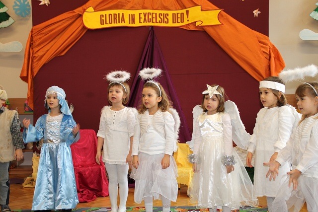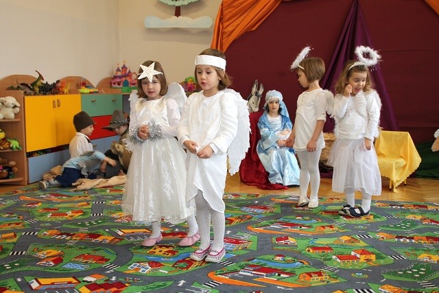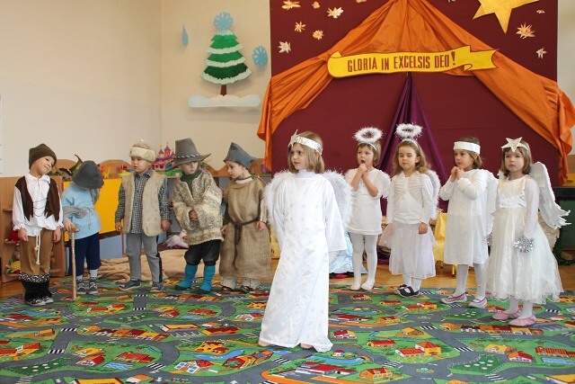 W piątek, 21 grudnia grupa 4-latków z Akademii Edukacji Przedszkolaka zaprosiła pracowników Pałacu Młodzieży do swojej sali, gdzie zaprezentowała „Jasełka”. Piękne Anioły, Maryja, królowie i pastuszkowie – zachwycili publiczność. Przedszkolaki głośno śpiewały, recytowały i nie było widać po nich żadnej tremy. Może to dlatego, że miały już za sobą występ przed rodzicami? Pracownicy Pałacu nagrodzili grupę „Słoniki” brawami na stojąco. Gratulujemy dzieciom, nauczycielom oraz rodzicom, którzy przygotowali tak wspaniałe stroje.
