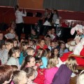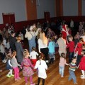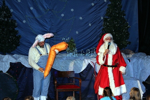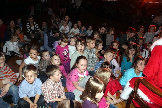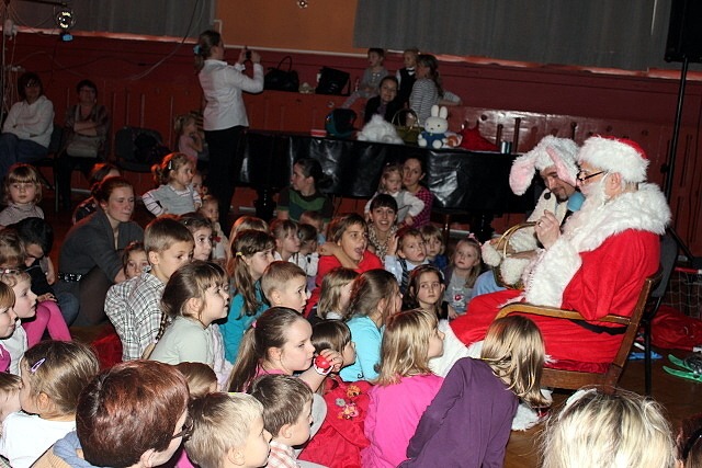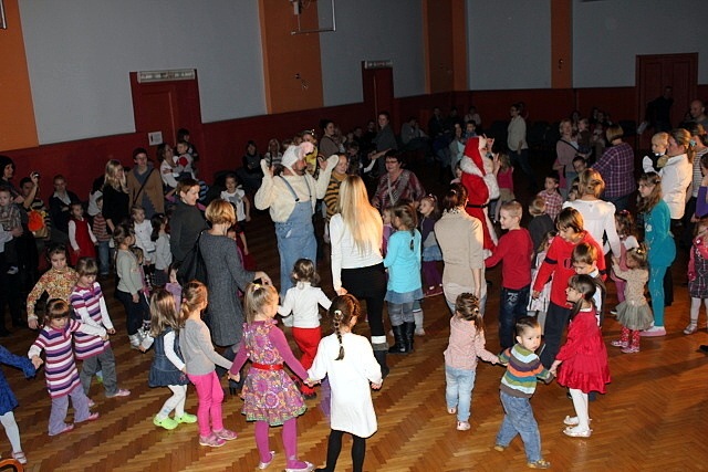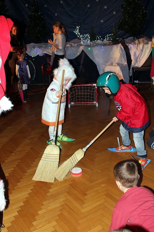 Przy rytmicznej muzyce dzieci tańczyły, śpiewały i brały udział w ciekawych konkurencjach takich jak np. mini hokej z miotłą, czy skoki przez marchewkę. Nie zabrakło świątecznych akcentów. Było śpiewanie kolęd i opowieści Mikołaja o świętach. A gdy Mikołaj przyznał się do zagubienia prezentów, wszyscy dzielnie pomagali w ich odszukaniu.