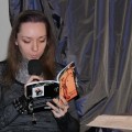 Artystka jest szczecinianką, studiuje Wzornictwo na Zachodniopomorskim Uniwersytecie Technologicznym w Szczecinie, jest też autorką wydanego przez Wyd. hogben, opowiadania-dokumentu, pt. „Biały Labirynt„. W rozmowie z prowadzącą spotkanie – Różą Czerniawską-Karcz, Małgorzata Goluda objaśniała publiczności nie tylko swoją biografię, hobby – taniec i śpiew, którymi wyraża siebie, ale też zainteresowania plastyczne, a szczególnie surrealistyczne mroczne rysunki, które wystawia w szczecińskich galeriach.