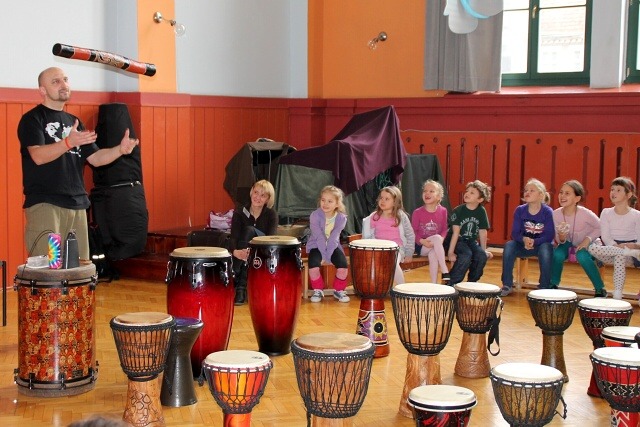 W trakcie warsztatów dzieci zapoznały się z afrykańskimi instrumentami i nauczyły podstawowych uderzeń oraz technik gry na bębnie djembe. Uczestnicy grali zespołowo oraz z podziałem na role. Przez wspólną zabawę przenieśli się do Afryki.