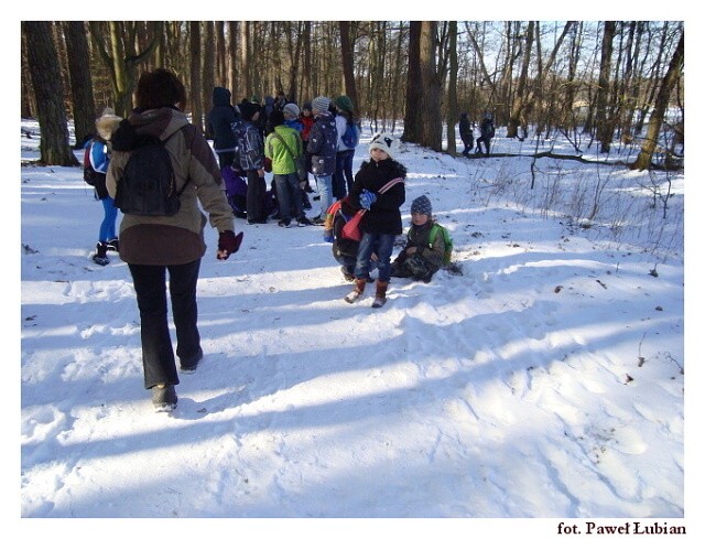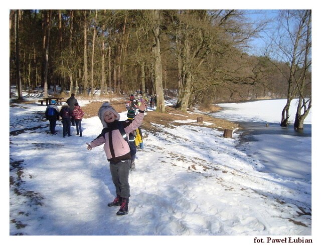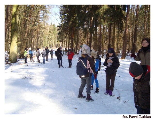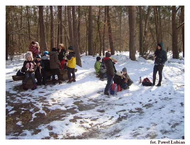 Ostatnia 872 Leśna Sobota odbyła się w piękną, słoneczną, zimową pogodę. Wbrew pozorom 8 kilometrów minęło szybko! Choć pod koniec marszu nogi odmawiały nam posłuszeństwa, bawiliśmy się świetnie. Było rzucanie się śnieżkami, oglądanie koni na wybiegu za gajówką Żółtew. Jednak to nie był koniec atrakcji. Gdy wracaliśmy przez Bartoszewo do autobusu, spotkaliśmy dziki hasające po lasku przy ogródkach działkowych. Jedni się cieszyli, inni – panikowali. Na szczęście nic nikomu się nie stało. Wszyscy dotarliśmy na miejsce – szczęśliwi i cali! I zmęczeni.