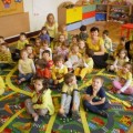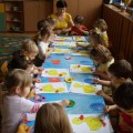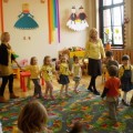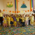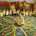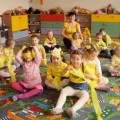 W środę, 10 kwietnia bawiliśmy się z kolorem żółtym. W tym dniu, wszystkie dzieci przyszły ubrane w kolorze słońca, który niesie w sobie ciepło i radość. Przedszkolaki uczestniczyły w zabawach kołowych, dyskotece z żółtymi wstążkami, rozwiązywały zagadki. Układały na dywanie z żółtych wstążek słoneczko i kwiaty. Następnie wszystkie grupy wykonały prace plastyczne – malowały kaczuszki, żółte motyle, wykonały pszczółki, słoneczka i tulipany. Ten dzień spędziliśmy w bardzo wesołej i wiosennej atmosferze.