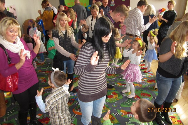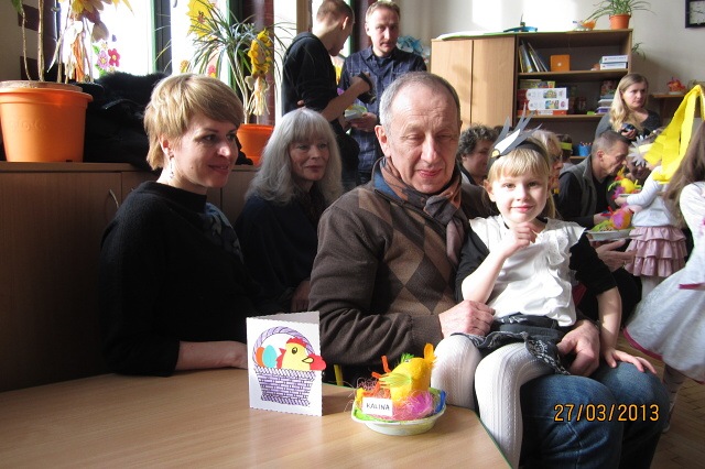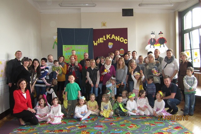 W środę 27 marca do grupy IV „Słoniki” licznie przybyli rodzice i zaproszenie goście, aby wspólnie świętować z okazji zbliżających się Świąt Wielkanocnych. Dzieci zaprezentowały przedstawienie słowno-muzyczne pt. „Cały świat pachnie wiosną”, które zostało przyjęte ogromnymi brawami. Następnie złożyliśmy rodzicom świąteczne życzenia w postaci wiersza i wręczyliśmy wielkanocne kurczaki, które dzieci wykonały samodzielnie na zajęciach plastycznych. Na koniec wszyscy wspólnie zatańczyliśmy wiosennego walczyka i zrobiliśmy pamiątkowe zdjęcie. Miło jest spotkać się w tak radosnej i rodzinnej atmosferze.