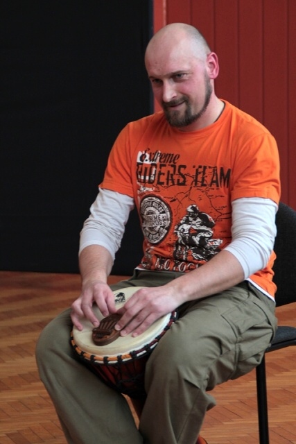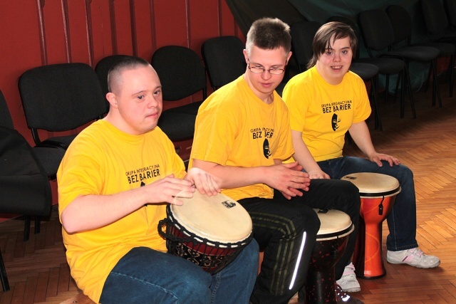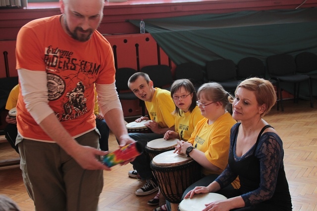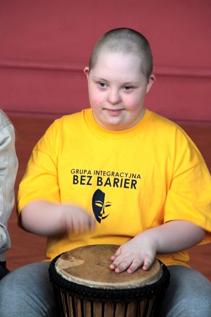 17 kwietnia, Grupa Integracyjna BEZ BARIER wzięła udział w warsztatach bębniarskich. Prowadzący zajęcia przybył do nas z tajemniczą walizką, z której wyjmował muzyczne niespodzianki. Dzięki temu uczestnicy poznali wiele nowych instrumentów, takich np. jak drumla, kalimba i oczywiście afrykańskie bębny djembe, na których mieli okazję zagrać. Mimo bólu dłoni, które tego dnia bardzo się napracowały, zajęcia z pewnością zapadną głęboko w pamięć. Były dla wszystkich niesamowitą, muzyczną przygodą.