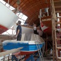 Zima tego roku nie chciała dać za wygraną i przetrzymała również żeglarzy na długo w hangarach. Chyba już każdy nie może się doczekać, by wyjść wreszcie na wodę. W ubiegłym roku o tej porze wszyscy już dawno zwodowali swe jednostki, obecnie, dopiero teraz trwają gorączkowe przygotowania do pierwszych „kroków” na wodzie. Keje jeszcze puste, bo pracy jest co niemiara; należy dokonać bieżących napraw części podwodnych jednostek, usunąć stare, zniszczone powłoki malarskie, nałożyć nowe, odświeżyć lakierami elementy drewniane, a także nałożyć powłoki przeciwporostowe na kadłuby. Wszyscy pracują bez wytchnienia. Flagowe jachty Centrum Żeglarskiego, a także te mniejsze typu Carina, odświeżone i pachnące lada moment zejdą na wodę.
