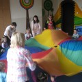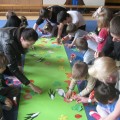 W piątek 29. kwietnia zaprosiliśmy rodziców, by zobaczyli jak dzieci podczas zabaw poznają aktualną porę roku – wiosnę. Przedszkolaki słuchały opowiadania „Na wiosennej łące” z wykorzystaniem ilustracji. Poznawały mieszkańców łąki, rozwiązywały zagadki. Uczestniczyły w zabawach kołowych „Chodzi wiosenka”, „Pszczółka”, ruchowych „Bociany chodzą po łące”, „Motyle na łące” oraz w zabawie „Wyścig ślimaków”. Dużo radości sprawiły im również zabawy z chustą animacyjną. Na koniec wspólnie z rodzicami wykonały pracę plastyczną pt. „Wiosenna łąka”. Dziękuję rodzicom za wspólnie spędzony czas.
