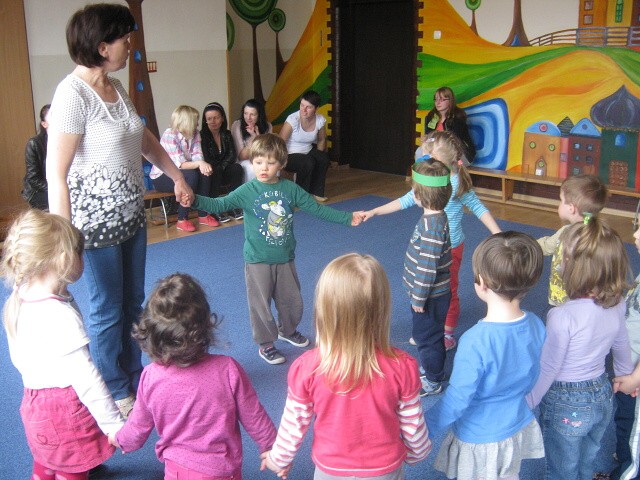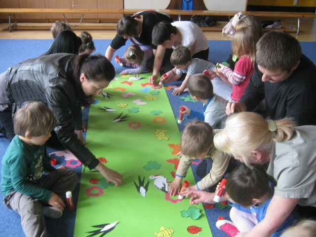 W piątek 29. kwietnia zaprosiliśmy rodziców, by zobaczyli jak dzieci podczas zabaw poznają aktualną porę roku – wiosnę. Przedszkolaki słuchały opowiadania „Na wiosennej łące” z wykorzystaniem ilustracji. Poznawały mieszkańców łąki, rozwiązywały zagadki. Uczestniczyły w zabawach kołowych „Chodzi wiosenka”, „Pszczółka”, ruchowych „Bociany chodzą po łące”, „Motyle na łące” oraz w zabawie „Wyścig ślimaków”. Dużo radości sprawiły im również zabawy z chustą animacyjną. Na koniec wspólnie z rodzicami wykonały pracę plastyczną pt. „Wiosenna łąka”. Dziękuję rodzicom za wspólnie spędzony czas.
