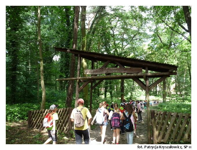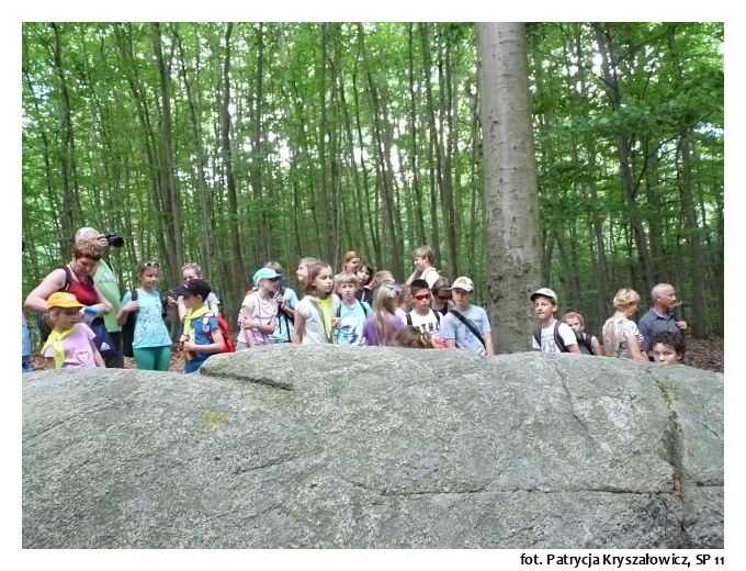 Nasza dalsza wędrówka prowadziła szlakiem niebieskim, który doprowadził nas do Głazu Grońskiego – głazu narzutowego, który poświęcony jest pamięci słynnego polskiego taternika, Stanisława Grońskiego, który był pionierem turystyki Ziemi Szczecińskiej. Po krótkiej przerwie i otrzymaniu wpisów oraz pieczątek do naszych książeczek turystyki pieszej, ruszyliśmy szlakiem czarnym w stronę osiedla Bukowego. Celem naszej wędrówki było boisko gościnnej Szkoły Podstawowej