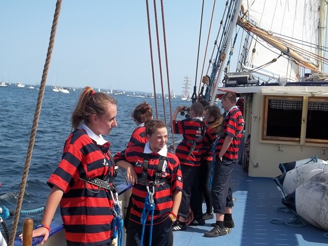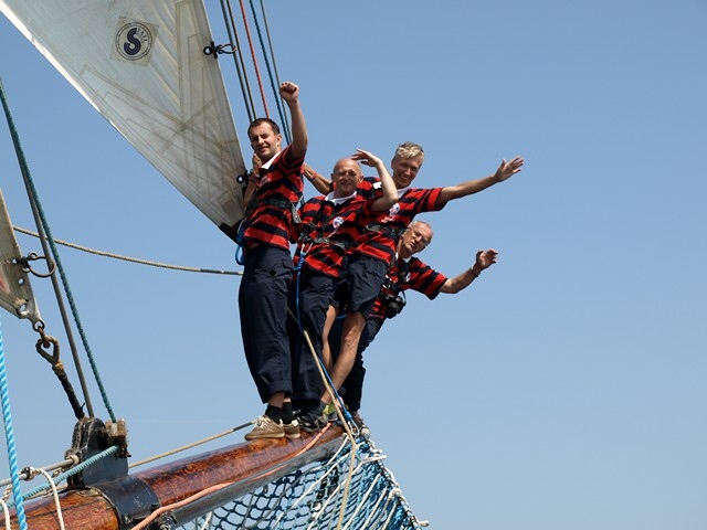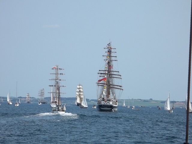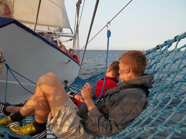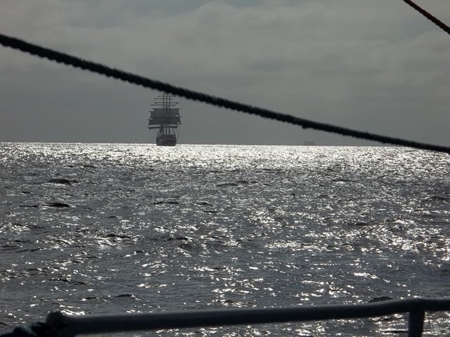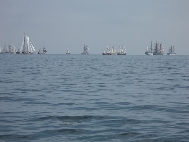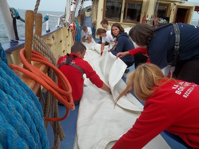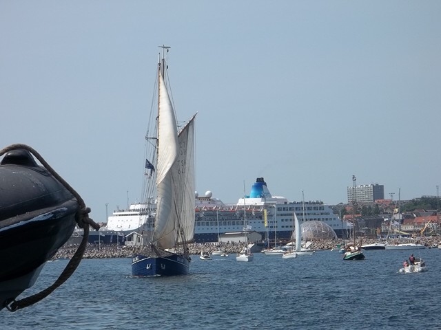 Po wypłynięciu z Aarchus i serdecznym pożegnaniu przez mieszkańców miasta i asystujące jednostki pływające pożeglowaliśmy na linię startu na pełnym morzu, która wyznaczona została przez dwie jednostki pomocnicze. Wcześniej jednak przepłynęliśmy pod mostem zawieszonym 55 metrów nad wodą, majestatycznie łączącym Danię i Szwecję na wysokości Kopenhagi. Start odbył się osobno dla każdej kategorii żaglowców – najpierw wyruszyły te największe, później, po pół godzinie jachty klasy B – wśród nich nasz „Kapitan Burchardt”, po 15 minutach kolejne klasy. Start żaglowców nie był spektakularny, gdyż przewrotny Neptun poskąpił wiatru i wszystkie żaglowce stały w miejscu przy zupełnej flaucie. Dopiero wieczorem pierwsze powiewy ruszyły nas z miejsca. Siła wiatru wzmagała się coraz bardziej, aż doszła do 7 – 8 w skali bouforta. Wachty pełnione były z coraz większą trudnością, wielu z nas poddało się chorobie morskiej która odebrała siłę i chęci do aktywnego udziału w zadaniach, jednak ci z nas, którzy oparli się przykrym dolegliwościom, dzielnie zastępowali i wspierali pozostałą załogę. Po ciężkiej nocy dotarła do nas przykra wiadomość: 11 lipca, z nieznanych przyczyn, ponad 100 letni żaglowiec Wywern zaczął iść na dno przy południowym wybrzeżu Gotlandii. 10-osobowa załoga szybko została uratowana i helikopterem odwieziona na brzeg. Kilka godzin później na pokład tonącego statku weszło 3 członków załogi żaglowca Wilde Swan – także biorącego udział w regatach Tall Ship Races, jednak przechylona jednostka poszła pod wodę. Wraz z nią zatonął jeden z żeglarzy, który jak mówią świadkowie zaplątał się w liny. Pozostałą dwójkę uratowała załoga szwedzkiej łodzi ratunkowej.