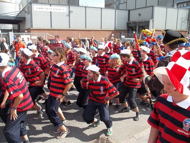 Po przyjeździe do Aarchus i zainstalowaniu się na statku załogi naszego regionu spotkały się na wielkiej paradzie która przeszła ulicami Aarchus wzbudzając zachwyt i podziw widzów. Występowały też załogi innych krajów, jak znana nam z TTSR 2007 meksykańska załoga Cuauhtemoca lub egzotyczna dla naszej europejskiej kultury załoga Shabab Oman z Omanu, jednak nasza reprezentacja rozpoznawalna była dzięki jednolitym strojom w barwach Szczecina, które są najliczniej i najserdeczniej dostrzegane przez gospodarzy i przybyłych gości. Wieczorem wszystkie, wielonarodowościowe załogi miały możliwość bezpośrednich i indywidualnych kontaktów na wielkim party dla załóg przy doskonałej muzyce. Obecnie załoga Kapitana Borchardta przygotowuje się do pełnego objęcia wacht i obsługi żaglowca, szkoli się z ratownictwa, nawigacji i obsługi żagli, by wkrótce wypłynąć w pełne morze. Pozdrawiamy z radosnego Aarchus!