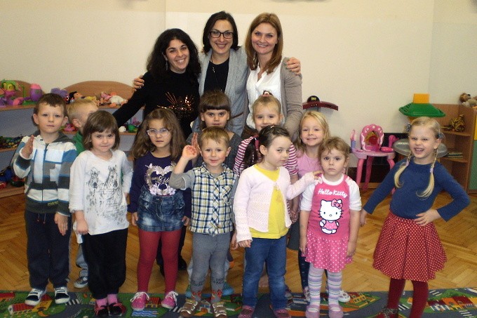 14 i 18. listopada odwiedził nas niezwykły gość z Włoch. Pani Antonella przyjechała z Neapolu jako wolontariuszka i wraz z panią Andżeliką prowadziły ciekawe zajęcia we wszystkich grupach AEP. Dzieci poznawały nowe słowa po włosku i utrwalały wcześniej już poznane, śpiewały piosenki, uczyły się wiersza, a także bawiły się przy muzyce. Na koniec wspólnych zabaw z językiem włoskim zrobiliśmy pamiątkowe zdjęcie. Pani Antonella obiecała, że na pewno jeszcze do nas wróci. Zapraszamy!