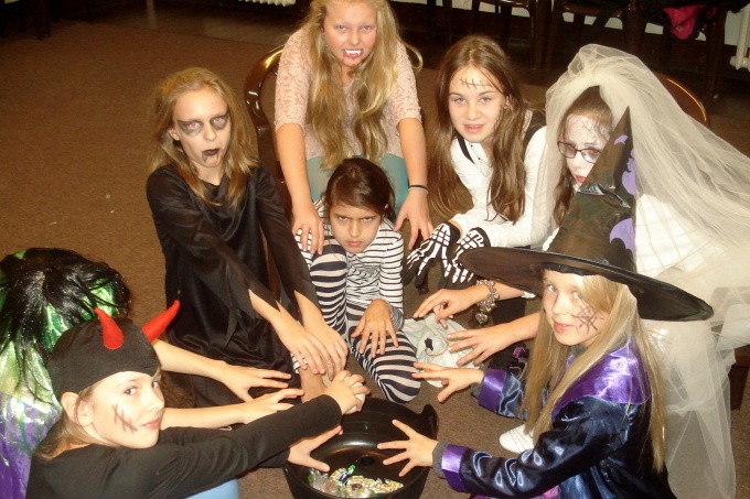 W dniu 31 października grupy Alla Breve, Fanaberia i Dell` Arte z Pracowni Teatralnej p. Iwony Faj wcieliły się w czarownice, wiedźmy, strzygi i upiory i opanowały Pałac Młodzieży. Odwiedziły p.dyr. Iwonę Szary, Pracownię Plastyczną p. Marioli Grochowskiej, Pracownię Gitarową p. Damiana Wilka, Pracownię Muzyki Etnicznej p. Bogdana Kulika oraz Pracownie Taneczne p.Anety Pilarskiej i p. Doroty Lindner-Baran. Celem niezapowiedzianych wizyt były oczywiście słodycze w myśl zasady: „cukierek albo psikus„. Po zdobyciu słodkich łupów i ucztowaniu, przy wtórze upiornej muzyki, wszystkie straszliwe postaci rozeszły się bezszelestnie po ulicach Szczecina, aby za rok znów powrócić….
