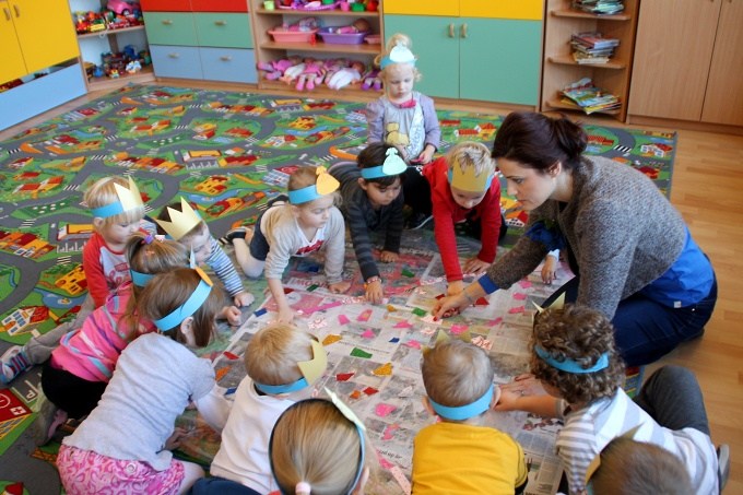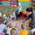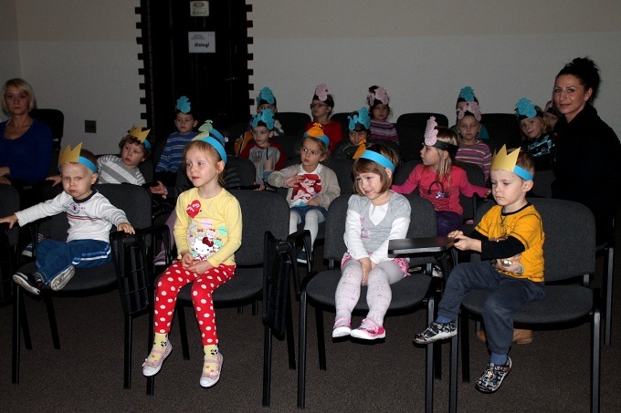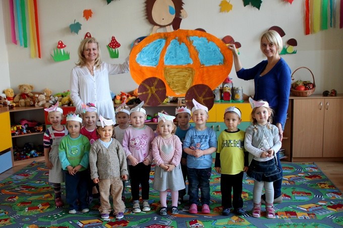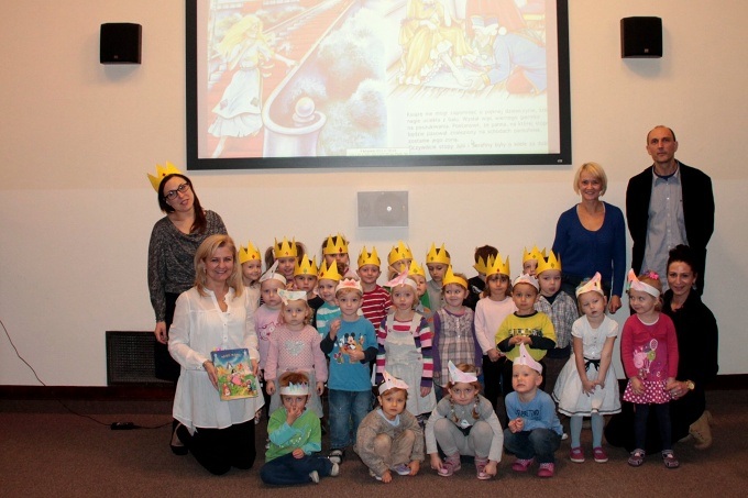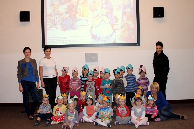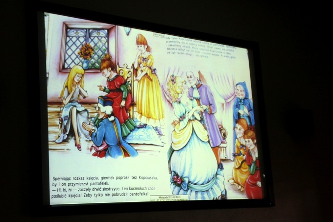 Kolejnym bohaterem książki, z którym spotkały się nasze przedszkolaki był Kopciuszek. Ilustracje prezentowane na dużym ekranie przeniosły dzieci w baśniowy świat. Poznały smutny los biednej dziewczyny, której na szczęście Dobra Wróżka pomogła wybrać się na książęcy bal. Suknia balowa Kopciuszka, Dobra Wróżka i piękna kareta – wszystko co dzieci widziały i usłyszały ma odzwierciedlenie w pracach plastycznych, które można podziwiać na III piętrze przy Akademii Edukacji Przedszkolaka.