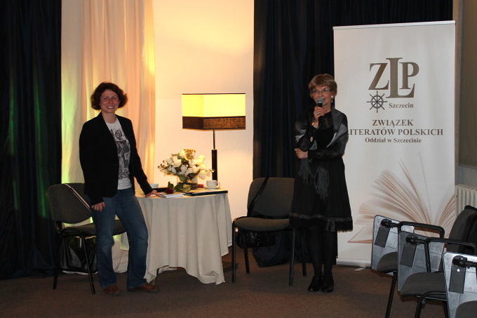 23. wieczór W PAŁACU literacko upłynął pod znakiem dobrej poezji. Gościem spotkania była szczecińsko-poznańska poetka -Zdzisława Gierszal. Szczecinianka , absolwentka historii US, wybrała zawód bibliotekarki. Początki tej pracy w Bibliotece Klubu Garnizonowego w Szczecinie zaowocowały odkryciem potrzeby poetyckiego wypowiedzenia. Potem była Wojskowa Grupa Literacka „IN AETERNUM”, debiut i wieczór poetycki w Klubie, pierwsze konkursowe sukcesy poetyckie, „debiut ognisty” w Korytowie w 2012 r. i tomik wydany w 2013, w serii:akcent, dofinansowanej przez UM Szczecin, gdyż od 2011 roku Poetka należy do szczecińskiego oddziału ZLP. Rozmowa o poezji i czytanie wierszy, przywoływanie ulubionych poetów / Herberta, Celana/ to jedna z wielu pasji Zdzisławy Gierszal. Publiczność chętnie podjęła dialog o poezji i sięgnęła po tomik „pomiędzy” z dedykacją Autorki. Przy kawie i herbacie, jak zawsze w urokliwym wnętrzu i wcale nielistopadowym klimacie trwały rozmowy o sztuce. A wydarzenie zarejestrowała TVP Szczecin.