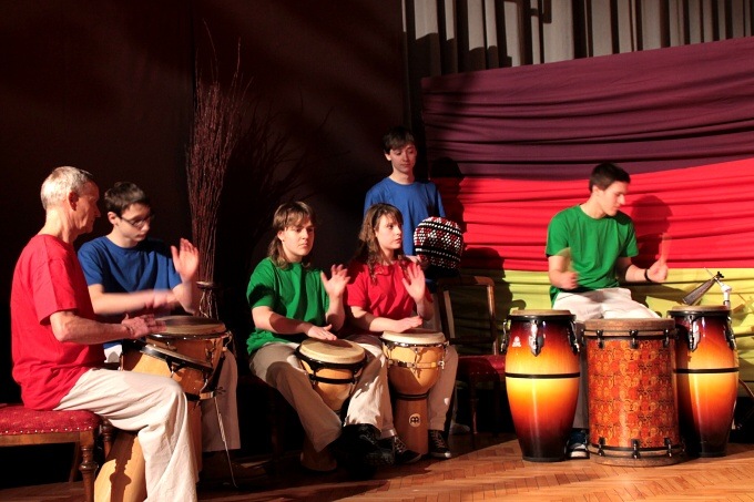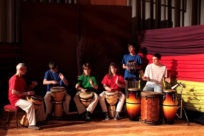 Piątkowy wieczór, 24 stycznia w Pałacu Młodzieży był wyjątkowo gorący. Mimo, że oknem prawdziwa zima, u nas można było się ogrzać w SŁOŃCU AFRYKI! Taki właśnie tytuł nosiło widowisko taneczno – muzyczne, które dla publiczności przygotowały Pracownia Tańca Etnicznego i Pracownia Muzyki Etnicznej. Gościnnie na scenie wystąpił również zespół „Afrique Soque” z z gwinejską wokalistką M`mharry Sylla Wiszniewską oraz „Studio Tańców Etnicznych”. Dzięki tancerzom i muzykom mogliśmy poczuć energię prawdziwej, słonecznej Afryki.