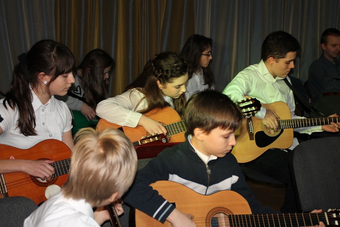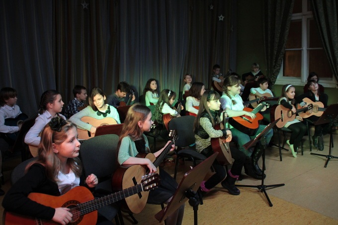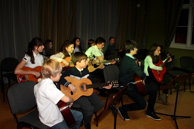 We wtorek, 21 stycznia uczestnicy Pracowni Gitarowej pod kierunkiem Damiana Wilka zaprezentowali zgromadzonej publiczności swoje umiejętności w świątecznym repertuarze. Na koncercie oprócz dźwięku gitar można było również usłyszeć instrumenty smyczkowe – kontrabas i altówkę.