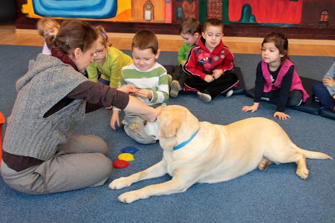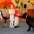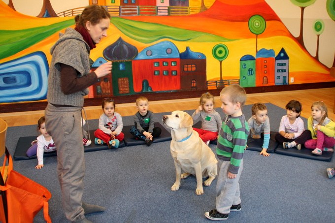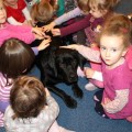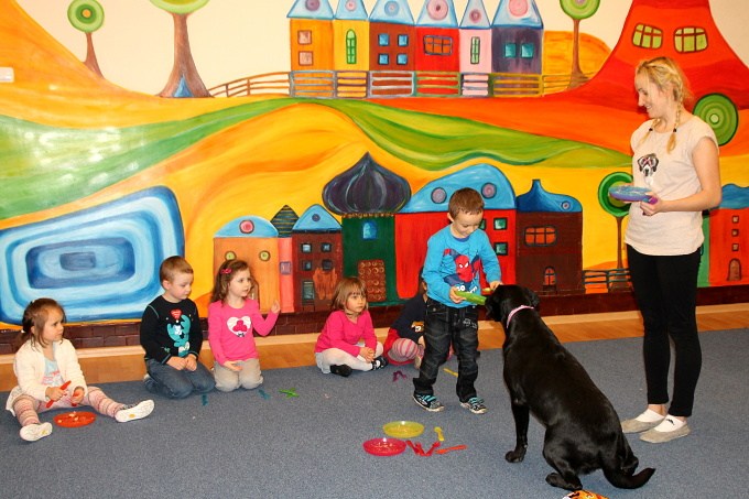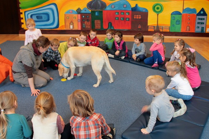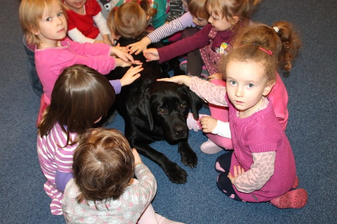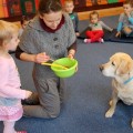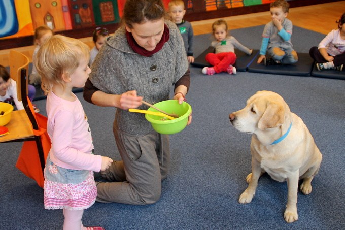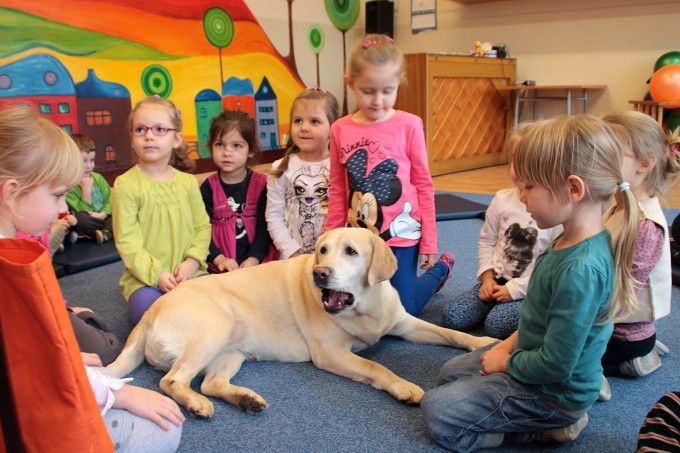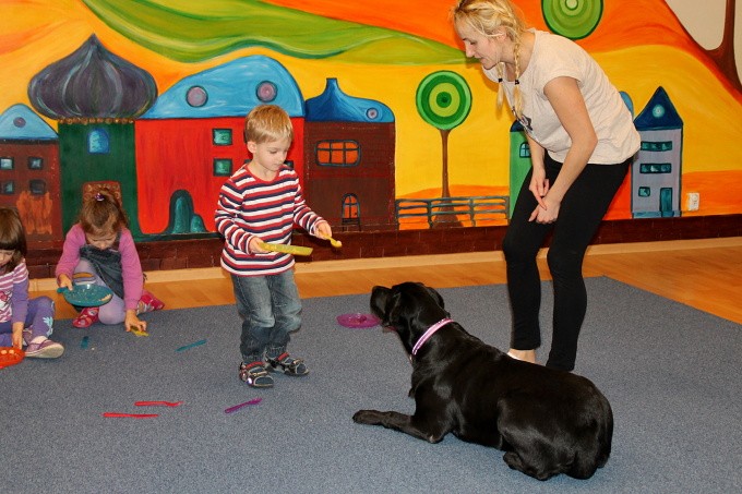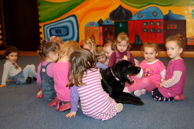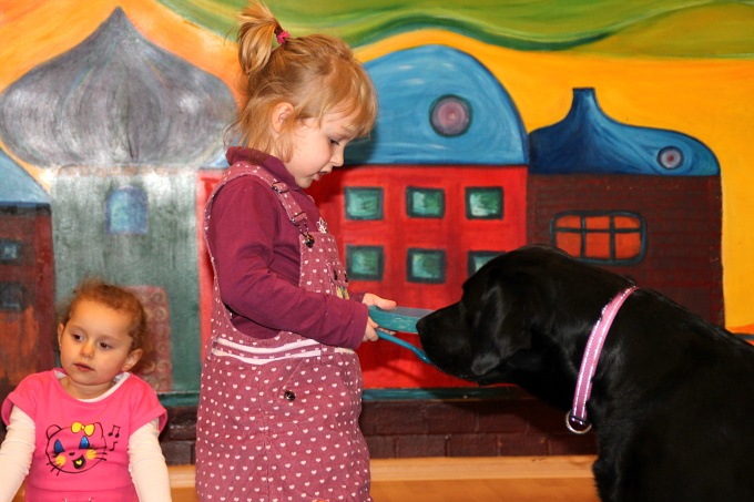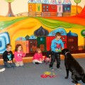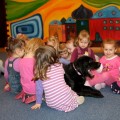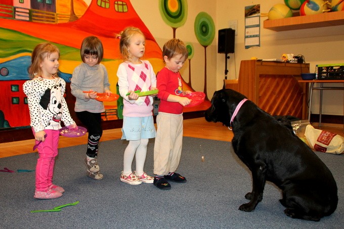 13 stycznia Buba i Aura, nasze zaprzyjaźnione czworonogi, wraz z opiekunkami odwiedziły Akademię Edukacji Przedszkolaka. Tym razem spotkanie z pieskami było okazją do powtórzenia nazw kolorów i ćwiczeń zręcznościowych. Aura i Buba dzielnie poddawały się wszelkim próbom tresury, prezentowały swoje umiejętności a na zakończenie zostały nakarmione przez dzieci, przy pomocy specjalnych, plastikowych łyżek. Jak widać na zdjęciach, wszystkim bardzo spodobała się ta zabawa!