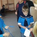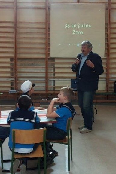 Gdy drużyny oddały wypełnione karty testowe Kapitan Mieczysław Ircha zaprezentował z dumą historie i zdjęcia swojego jachtu. Wszyscy z zaciekawieniem słuchali opowieści kapitana i oglądali prezentację. Kolejnym zadaniem konkursowym było układanie puzzli z obrazkami marynistycznymi oraz krzyżówka dotycząca wiedzy żeglarskiej, a ostatnia kategoria konkursowa dotyczyła wiązania węzłów żeglarskich.