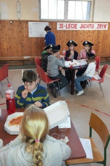 I nagle… pisk, radość dzieci… na sali wnoszą niespodziankę przygotowaną przez organizatorów konkursu – pyszną, pachnącą pizzę!