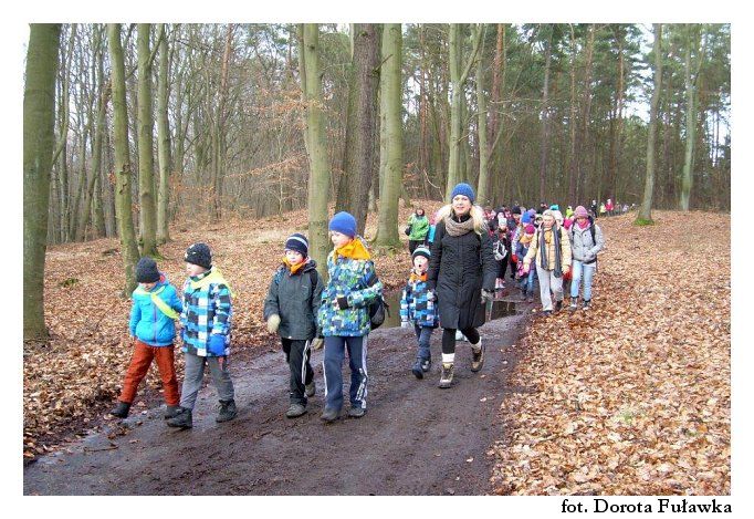889 Leśna Sobota po Puszczy Bukowej odbyła się w przedwiosennej atmosferze. Nad głowami turystów świeciło piękne słońce, pod stopami mieli błoto, a miejscami lód pokryty wodą. W związku z tym było trochę dodatkowej frajdy, ale nie obyło się bez upadków. Na szczęście żadnej kontuzji nie stwierdzono. Uczestnicy rajdu musieli najpierw dojechać w odległy zakątek Puszczy Bukowej, a potem mogli wyruszyć na trasę i delektować się urokami okolicy. Mieli do wyboru trasy 6km, 12km lub 23km. Najmłodsi wyruszyli z ul. Struga szlakiem niebieskim i dotarli do Śmierdnicy. W rajdzie wzięło udział 119 uczestników z 9 szkół.