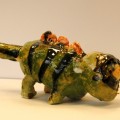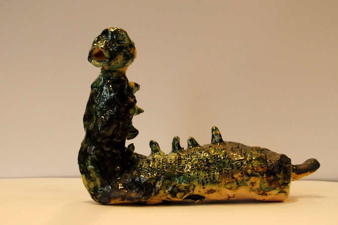 Uczestnicy IV grupy z Pracowni Ceramicznej prowadzonej przez Kornelię Tumanowicz, stworzyli w trakcie zajęć figurki przedstawiające smoka. Aby ujrzeć efekt końcowy trzeba było uzbroić się w cierpliwość. To długi proces, także technologiczny. Prace zrobiono w glinie garncarskiej z dodatkiem szamotu, wykonano je zgodnie z wymogami rzeźby ceramicznej z pustą przestrzenią wewnątrz. Każda praca w zależności od wielkości przeszła dłuższy lub krótszy etap suszenia. Następnie odbyło się wypalenie na tzw. biskwit w temperaturze 900 stopni Celsjusza. Prace po pierwszym wypale zostały pomalowane angobami, zalane szkliwem transparentnym i wypalone w temperaturze 1050 st. Celsjusza. Praca Jaśminy dla uzyskania dodatkowych efektów plastycznych była dwukrotnie szkliwiona i ponownie wypalona. Uczestnicy zajęć grupy IV to dzieci w wieku 6, 7, i 8 lat.