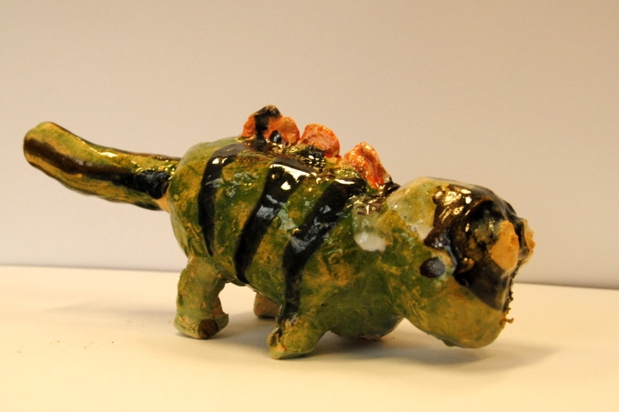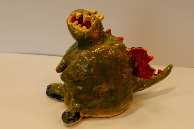Uczestnicy IV grupy z Pracowni Ceramicznej prowadzonej przez Kornelię Tumanowicz, stworzyli w trakcie zajęć figurki przedstawiające smoka. Aby ujrzeć efekt końcowy trzeba było uzbroić się w cierpliwość. To długi proces, także technologiczny. Prace zrobiono w glinie garncarskiej z dodatkiem szamotu, wykonano je zgodnie z wymogami rzeźby ceramicznej z pustą przestrzenią wewnątrz. Każda praca w zależności od wielkości przeszła dłuższy lub krótszy etap suszenia. Następnie odbyło się wypalenie na tzw. biskwit w temperaturze 900 stopni Celsjusza. Prace po pierwszym wypale zostały pomalowane angobami, zalane szkliwem transparentnym i wypalone w temperaturze 1050 st. Celsjusza. Praca Jaśminy dla uzyskania dodatkowych efektów plastycznych była dwukrotnie szkliwiona i ponownie wypalona. Uczestnicy zajęć grupy IV to dzieci w wieku 6, 7, i 8 lat.