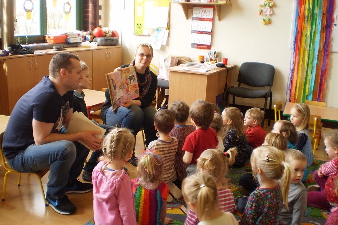 Kwiecień rozpoczęliśmy akcją „Cała Polska czyta dzieciom”, do której zachęciliśmy rodziców. W grupie I ulubione bajki i wiersze czytała mama Hani, mama Jacka i mama Zosi. W grupie II mama Kacperka, w grupie III siostra Dominiki oraz mama i tata Sary, w grupie IV mama Kuby i tata Piotrka. Dzieci z wielką uwagą i zadowoleniem słuchały tekstów w interpretacji swoich rodziców. „20 minut dziennie. Codziennie!” to mądry sposób na wspólne spędzanie czasu z dzieckiem i najlepsza inwestycja w jego przyszłość. Dziękujemy rodzicom!