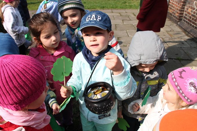 Dzieciom najbardziej podobało się szukanie szczęścia, czyli czterolistnej koniczynki oraz złota, który jest skarbem Leprykona – staruszka o niewielkim wzroście. Odwiedzając nas zgubił swój skarb. Na szczęście dzieci szybko odnalazły zgubę. W podziękowaniu staruszek obdarował przedszkolaki złotymi monetami.