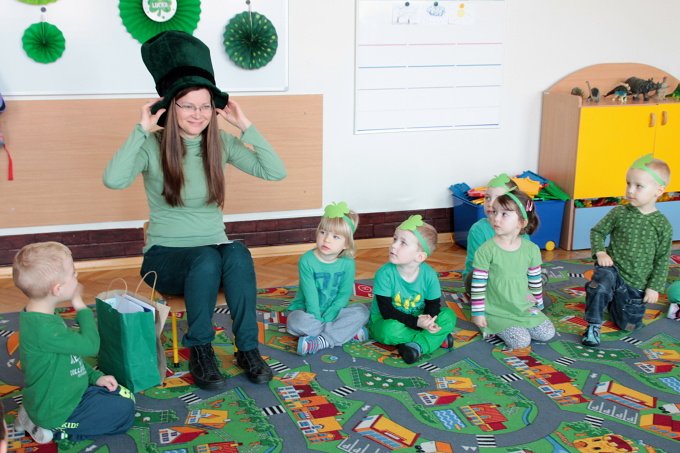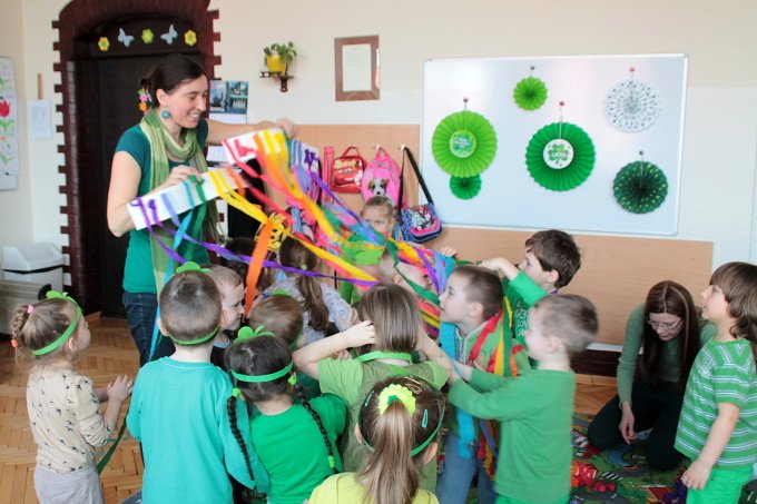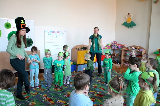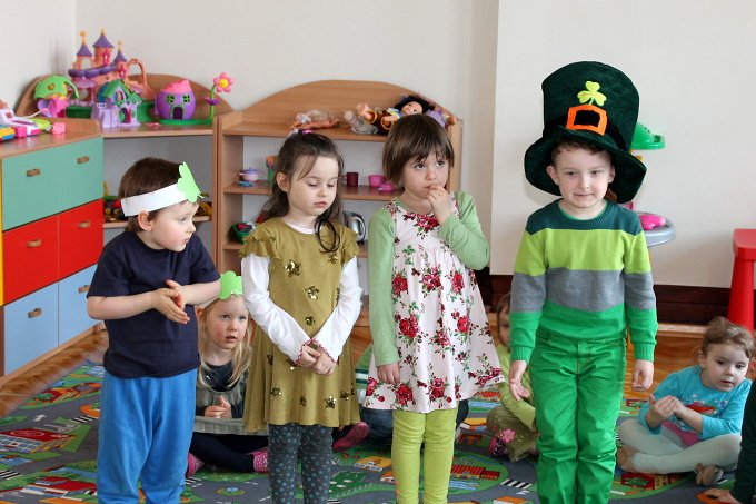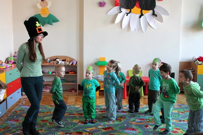W czwartek, 3 kwietnia obchodziliśmy Dzień św. Patryka – patrona Irlandii. Dzień ten obchodzony jest oczywiście przez wszystkich Irlandczyków, ale ponieważ to święto niezwykle wesołe, chętnie obchodzone jest również w Polsce. Nasza Akademia wypełniła się tego dnia prawdziwie wiosenną atmosferą. Stało się to za sprawą zielonych ubrań. Dzieci dowiedziały się jak wygląda flaga Irlandii i kim był św. Patryk. Królowały irlandzkie zabawy i irlandzka muzyka.