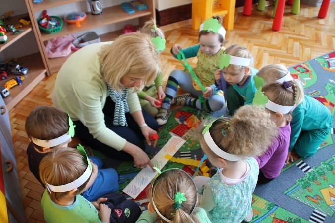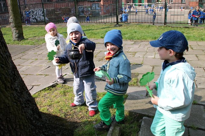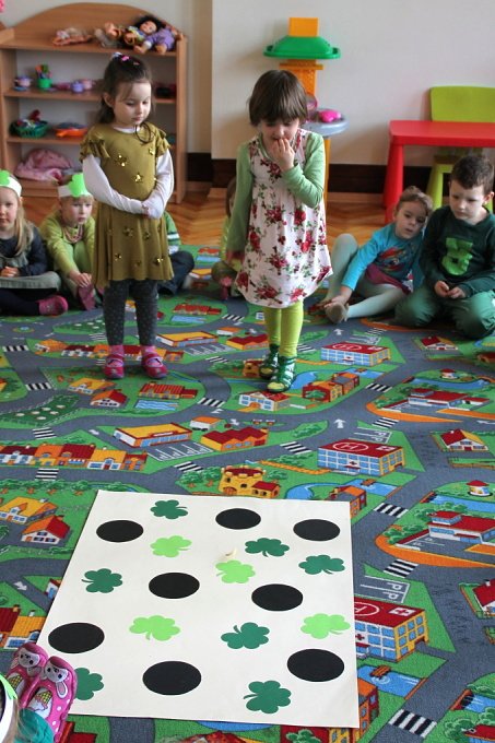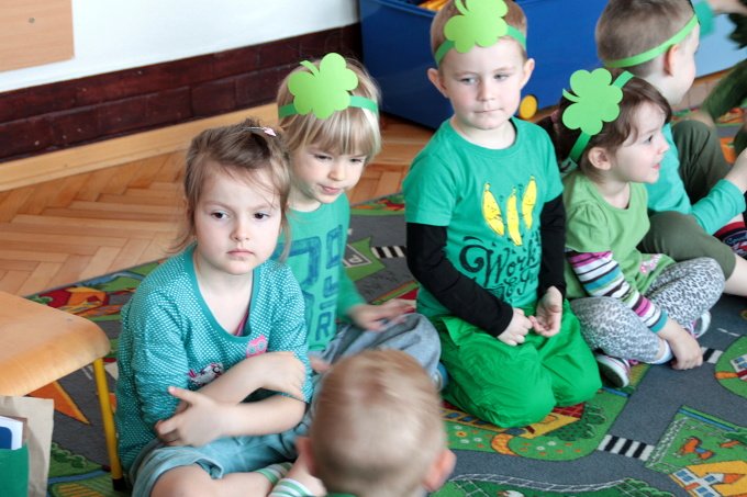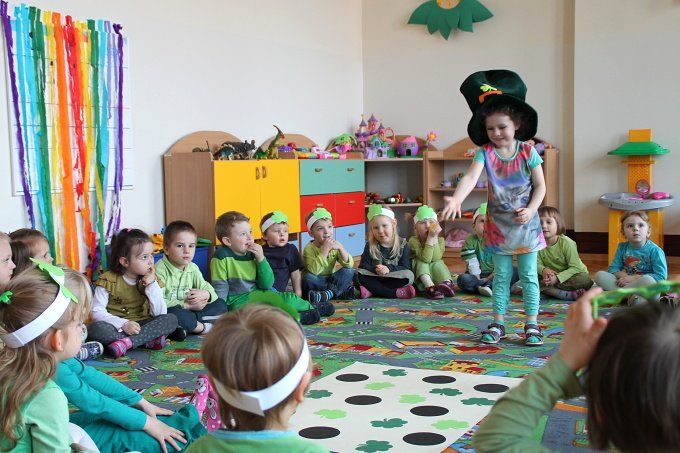 Dzieciom najbardziej podobało się szukanie szczęścia, czyli czterolistnej koniczynki oraz złota, który jest skarbem Leprykona – staruszka o niewielkim wzroście. Odwiedzając nas zgubił swój skarb. Na szczęście dzieci szybko odnalazły zgubę. W podziękowaniu staruszek obdarował przedszkolaki złotymi monetami.