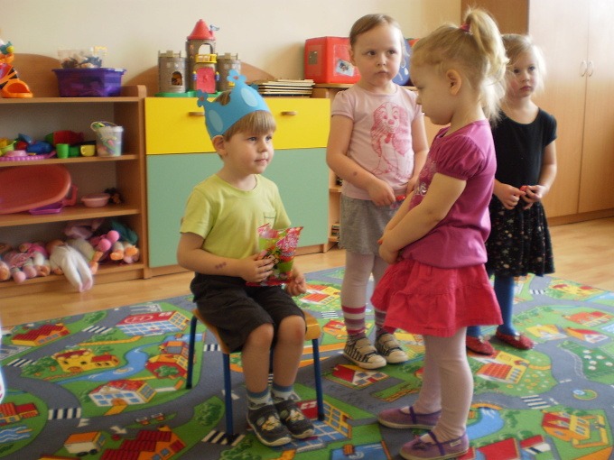 W kwietniu swoje święto obchodzili: w gr. I – Jacek, Michał i Hania, w gr. II – Julia a w gr. III – Krzysiu. Ten dzień jest bardzo szczególny dla naszych jubilatów, ponieważ właśnie w tym dniu zostają Królami i cały dzień noszą korony. Są też wspólne pląsy i zabawa przy muzyce. Oczywiście dla wszystkich dzieci jest słodki poczęstunek, który przygotowują rodzice jubilatów. Wszystkiego najlepszego!