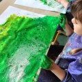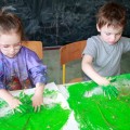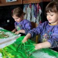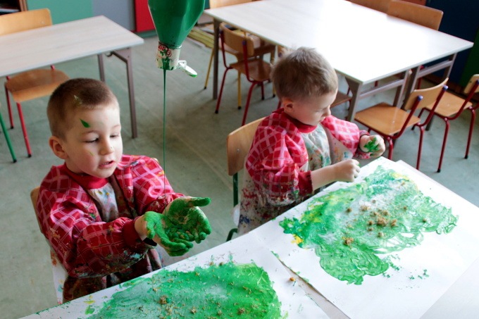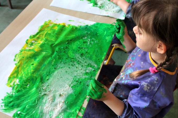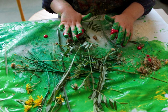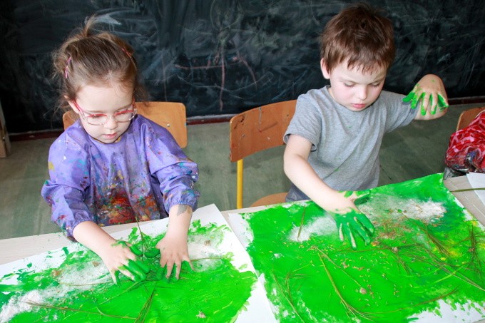 Mali artyści z pracowni plastycznej, prowadzonej przez Magdalenę Kucharską podczas dzisiejszych zajęć tworzyli wiosenne pejzaże. Białe kartki papieru ożyły, tak jak dłonie które dzieci wykorzystały przy pracy by obudzić przyrodę. W efekcie powstały piękne, prace, pełne kwiatów i łąkowych traw, które z pewnością pachną wiosną.