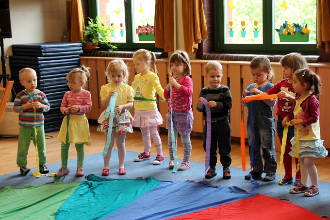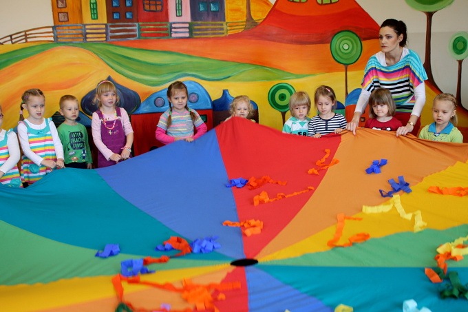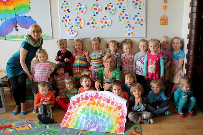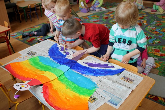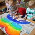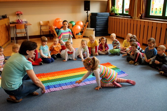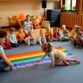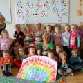 7 maja w naszej Akademii bawiliśmy się w tęczowo. Dzieci słuchały opowiadania o „Historii tęczy” i o tym jak powstały w niej kolory. Bawiliśmy się chustą animacyjną, a dzieci mogły wskazać swój ulubiony kolor. Układaliśmy pasy bibuły zgodnie z kolorami tęczy, a wszystko po to by cieszyć się pozytywna energią jaka daje nam kolorowy świat. 3-latki malowały tęczowego motyla i robiły tęczę z kolorowych odcisków rąk. 4 – latki przyklejały kolorowe paski na karton. Wszystkim ten bardzo kolorowy dzień sprawił dużo radości.