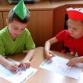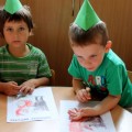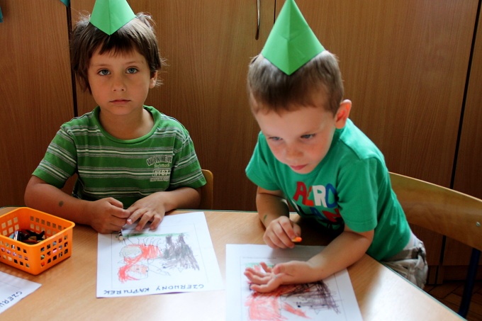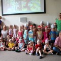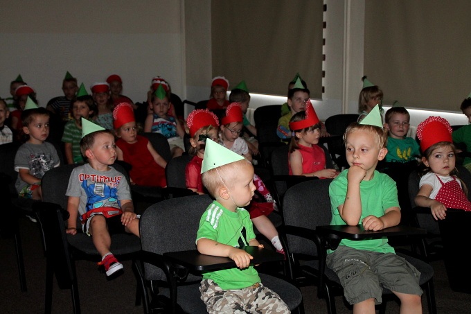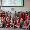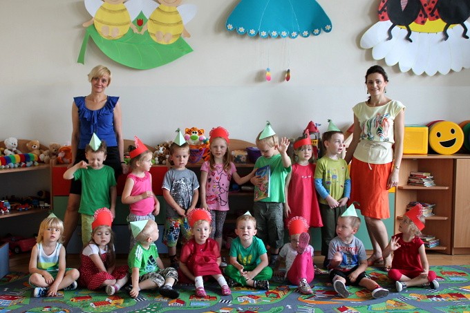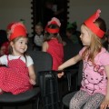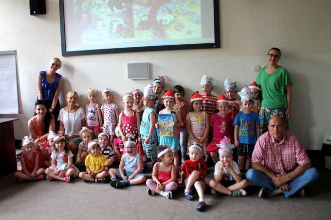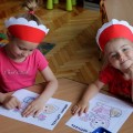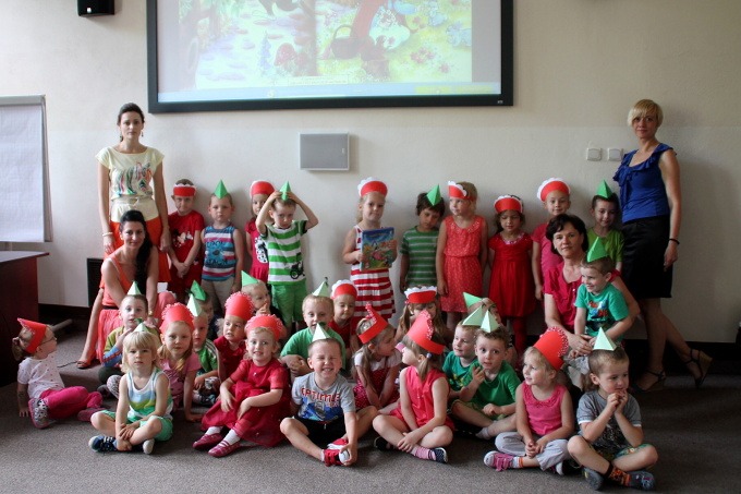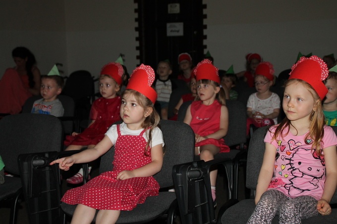 Ostatnią lekturą przeczytaną wspólnie z dziećmi w ramach projektu „Wychowanie przez czytanie” była bajka o Czerwonym Kapturku. Wszystkie przedszkolaki znały już historię o złym wilku ale z wielkim przejęciem po raz kolejny towarzyszyły Czerwonemu Kapturkowi w drodze do babci. Po przeczytaniu bajki i obejrzeniu ilustracji na dużym ekranie był czas na wspólne zabawy plastyczne i ruchowe związane tematycznie z przeczytaną książką.