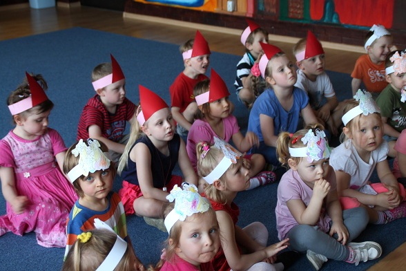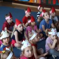 21 maja przedszkolaki z pałacowej Akademii wysłuchały w ramach projektu „Wychowanie przez czytanie” bajki o Królewnie Śnieżce i siedmiu Krasnoludkach. Tradycyjnie podczas słuchania obowiązywały stosowne nakrycia głowy. Tym razem sale zapełniły się małymi krasnalkami. Dzieci z wielkim przejęciem śledziły los wygnanej z domu Śnieżki, która znalazła schronienie w domu leśnych krasnali. Niestety nie udało jej się ukryć na dobre przez złą macochą ale na szczęście pocałunek księcia przyniósł dobre zakończenie! Podsumowaniem tej historii stały się prace plastyczne wykonane przez dzieci.