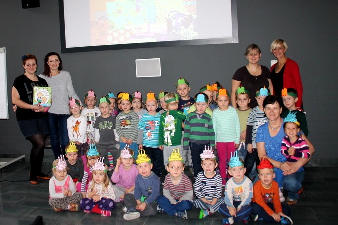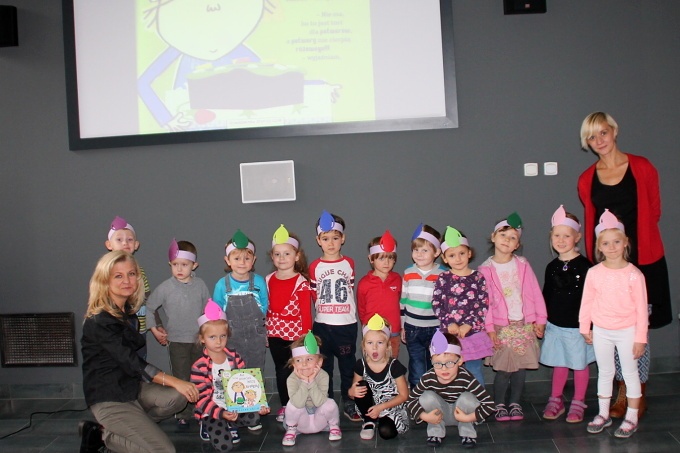 W trakcie czytania dzieci mogły zobaczyć na dużym ekranie ilustracje z książki. Dużą radość sprawił im również krótki film animowany o przygodach Charliego i Loli.
