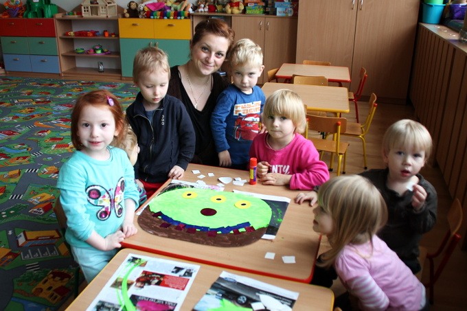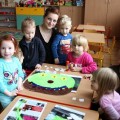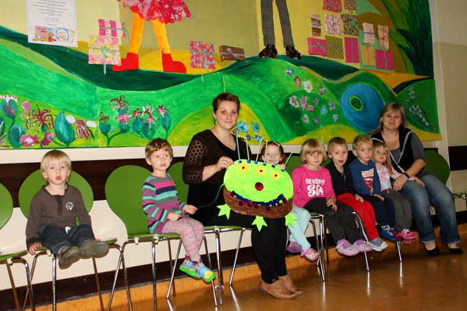Zwieńczeniem pierwszego spotkania były prace plastyczne, które dzieci wykonały w trakcie zajęć. Na dużej tablicy, która znajduje się tuż przy salach edukacyjnych AEP możemy zobaczyć Charliego, Lolę, mnóstwo prezentów oraz tort!