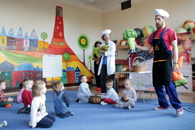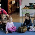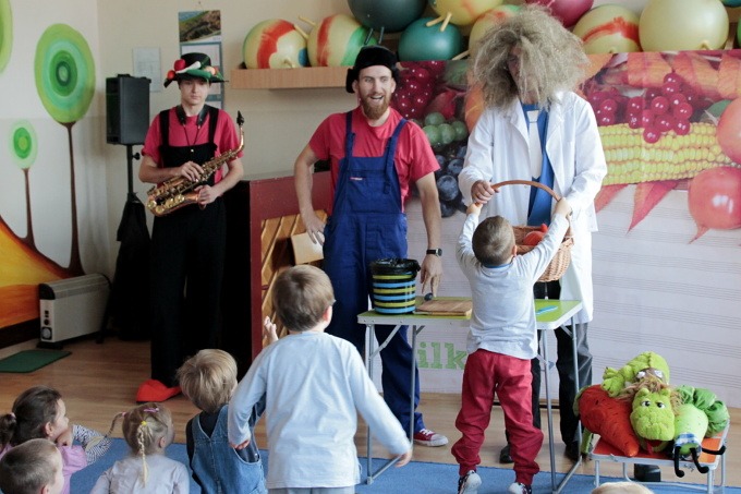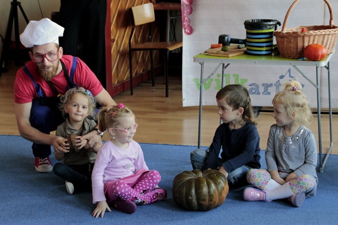 29 października do pałacowych czterolatków z Akademii Edukacji Przedszkolaka, przybyła smoczyca Fasola, by udowodnić dzieciom, że muzykę możemy odnaleźć nawet w kuchni. Piszcząca marchewka, złocisty saksofon, grająca dynia i soczyste dźwięki ogórka! A wszystko przyprawione szczyptą humoru i garścią dobrej zabawy! Przedszkolakom spodobała się pełna dźwięków i witamin kuchnia profesora Ekosława Dźwiękowskiego oraz jego pomocnika, rolnika Czesława! Teraz już wiemy czym żywią się smoki, jak z marchewki i ogórka zrobić instrument i jak stworzyć warzywną orkiestrę.