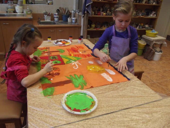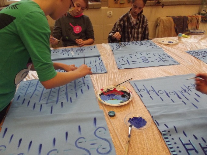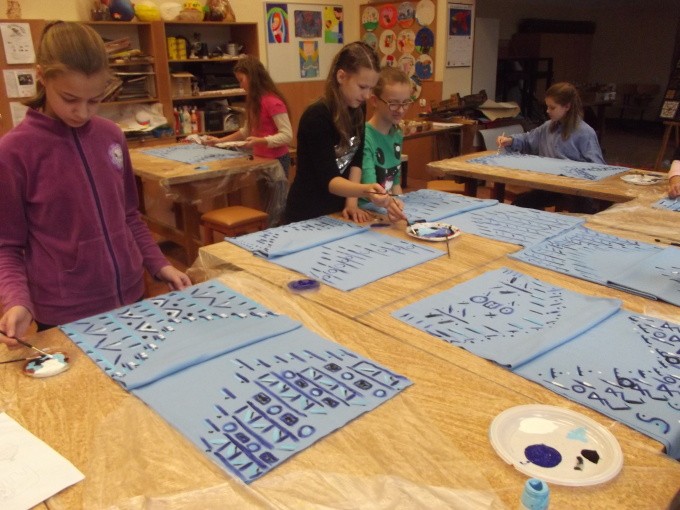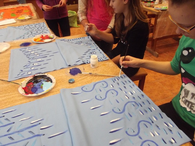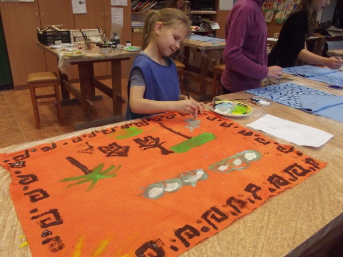 Dziewczęta z grup „Mała Etna” i „Etna” uczęszczające do Pracowni Tańca Etnicznego pod kierunkiem p. Justyny Kozłowskiej, przygotowują się do kolejnego widowiska. W sobotę, 15 listopada powstały kolejne obrazy afrykańskich wiosek na tkaninach, a także nowe kostiumy do tańca. Okazuje się, że uczestniczki warsztatów to nie tylko coraz bardziej doświadczone tancerki etniczne, ale też pełne pomysłów i twórcze dziewczęta. Dzięki sobotnim spotkaniom zacieśniają się więzi w obu grupach i nawiązują nowe przyjaźnie. Efekty tej twórczej pracy będziemy podziwiać za kilka miesięcy.