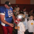 Na zakończenie jeszcze raz wystąpił Marcel, a potem na scenę weszli zawodnicy drużyny futbolu amerykańskiego „Husaria Szczecin”. Opowiedzieli dzieciom co nieco o dość skomplikowanych zasadach tej gry, pokazali kilka zagrań i pozwolili chętnym przymierzyć kaski oraz inne elementy stroju zawodnika.