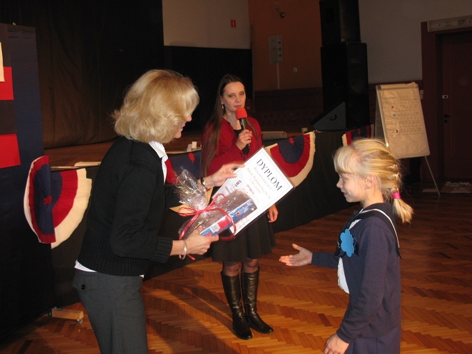 Przed przerwą nastąpiło jeszcze wręczenie nagród laureatom konkursu plastycznego. Nagrody otrzymali: Kalina Witkowska (Sp 63), Inga Janke (Sp 12), Kacper Sienkiewicz (Sp 56) i Marcin Piasecki (Sp 10). Po przerwie rozegraliśmy konkurs wiedzy o USA. Czasem było łatwiej, czasem trudniej, ale wszystkie zespoły radziły sobie doskonale. Ostatecznie zwyciężyli uczniowie SP 10, choć mamy nadzieję, że i pozostali uczestnicy czują się wygrani, bo różnice w punktacji były naprawdę niewielkie. A poza tym najbardziej liczyła się przecież dobra zabawa!