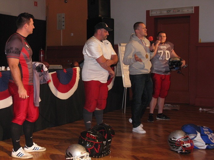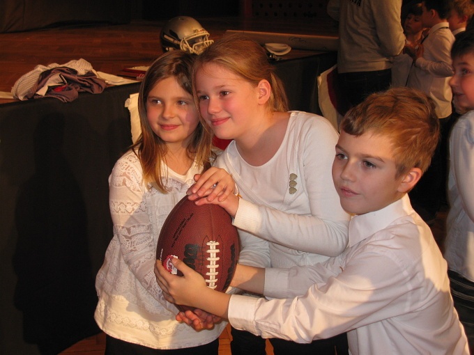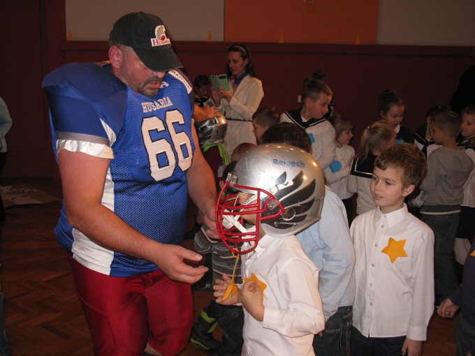 Na zakończenie jeszcze raz wystąpił Marcel, a potem na scenę weszli zawodnicy drużyny futbolu amerykańskiego „Husaria Szczecin”. Opowiedzieli dzieciom co nieco o dość skomplikowanych zasadach tej gry, pokazali kilka zagrań i pozwolili chętnym przymierzyć kaski oraz inne elementy stroju zawodnika.