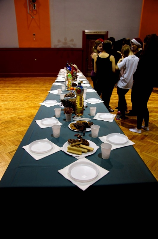 Dwa razy do roku nadarza się okazja do spotkania starszych grup teatralnych na wspólnych warsztatach – podsumowanie roku szkolnego oraz nadchodzące święta Bożego Narodzenia. W tym roku szkolnym nie mogło być inaczej. Teatr Decorum, Pomorska Trupa Pałacowa oraz grupa warsztatowa FAKTORIA wzięły udział we wspólnych warsztatach improwizacyjnych. Oprócz tradycyjnych tańców i odpoczynku przy słodko zastawionym stole, grupy miały okazję przeżyć na własnej skórze jedno z najciekawszych ćwiczeń Jewgienija Wachtangowa, ucznia Konstantego Stanisławskiego. Dodatkowo spotkanie okrasiły gry IMPRO: „Pytania”, „Wywiad z gwiazdą”, „90-60-30” oraz „Stanie, siedzenie, klęczenie”. Śmiechom i zabawie nie było końca. W ten teatralny sposób chcieliśmy rozpocząć nadchodzącą przerwę świąteczną. Niestety kolejne takie spotkanie dopiero pod koniec roku szkolnego, ale już z niecierpliwością go wyczekujemy.