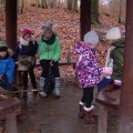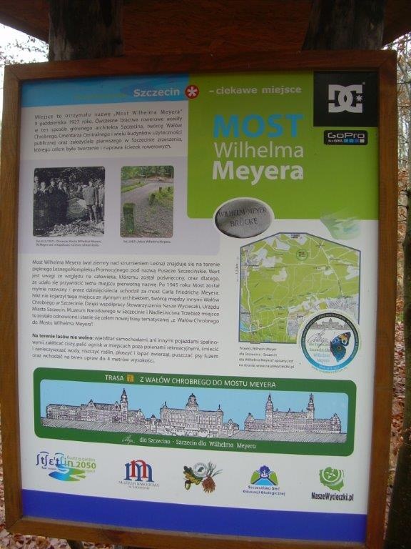 Kolejnym punktem na naszej trasie był Most Meyera. Dawno nie byliśmy w tym miejscu więc miło było zobaczyć go w poprawionym stanie i chwilę posiedzieć w zadaszonym domku z ławeczkami. Do tego miejsca w lesie przeważały buki, a po przejściu przez most zauważyliśmy zmianę – otaczały nas okazałe świerki. Podziwiając uroki jesiennego lasu dotarliśmy na Osowo, gdzie była meta dzisiejszego rajdu. Wbrew przewidywaniom pogoda utrzymała się przyzwoita, a deszcz rozpadał się dopiero gdy dochodziliśmy do autobusu.